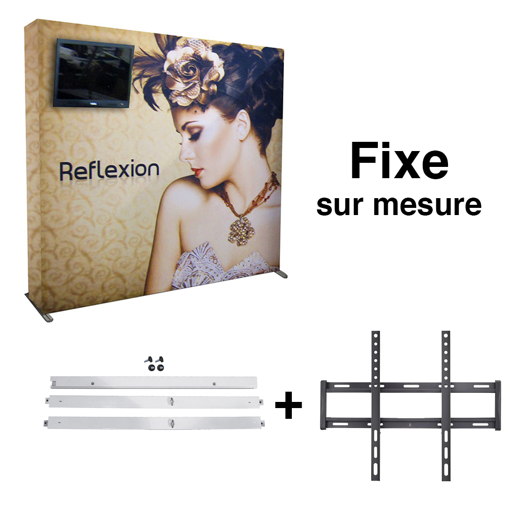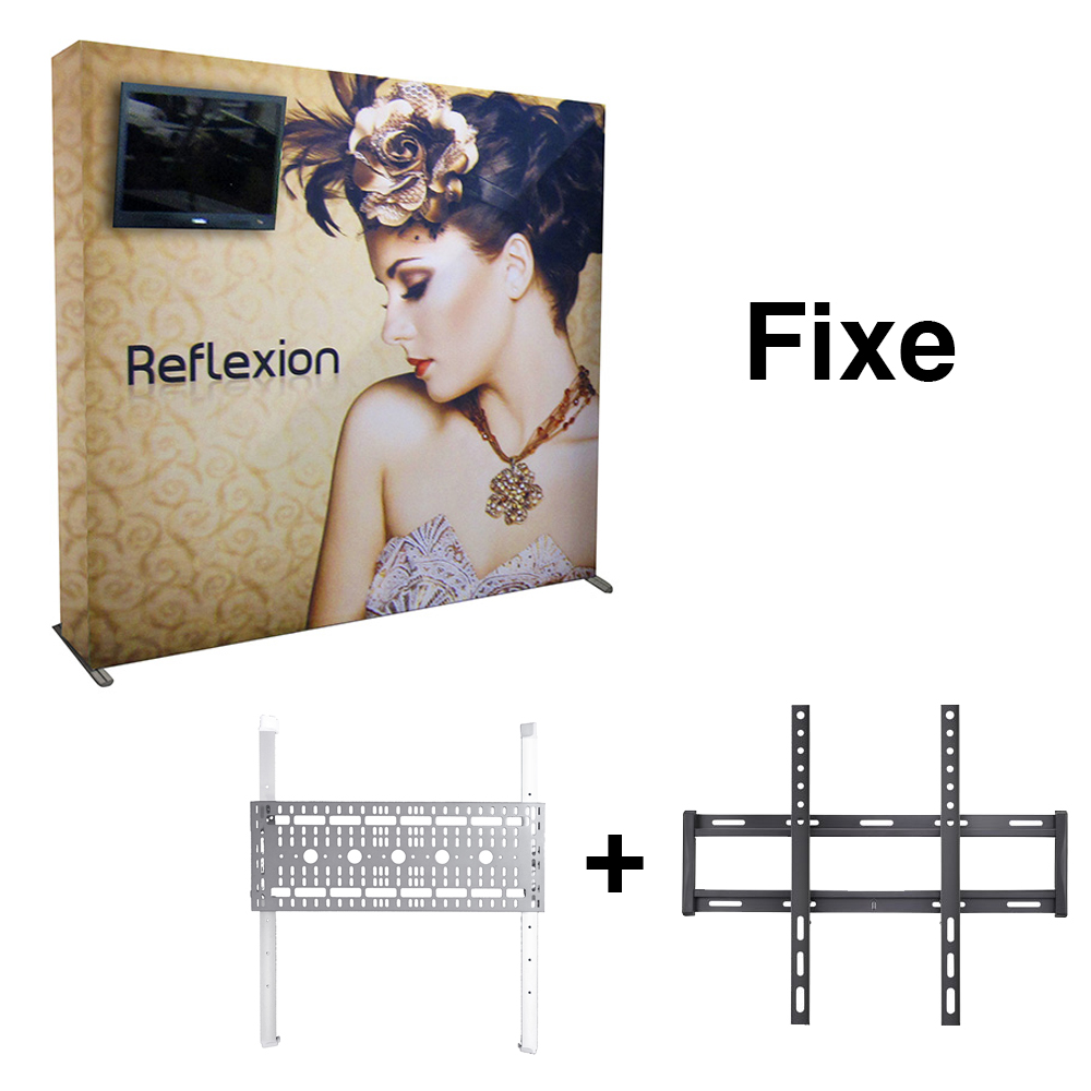 The fixed supports allow you to add a television to your Reflexion wall without the support or the wires being visible. We drill the fabric to install the screws and pass the wires. A universal stand is included, which allows compatibility with any TV.