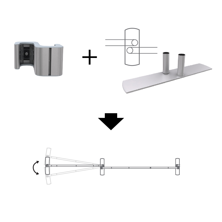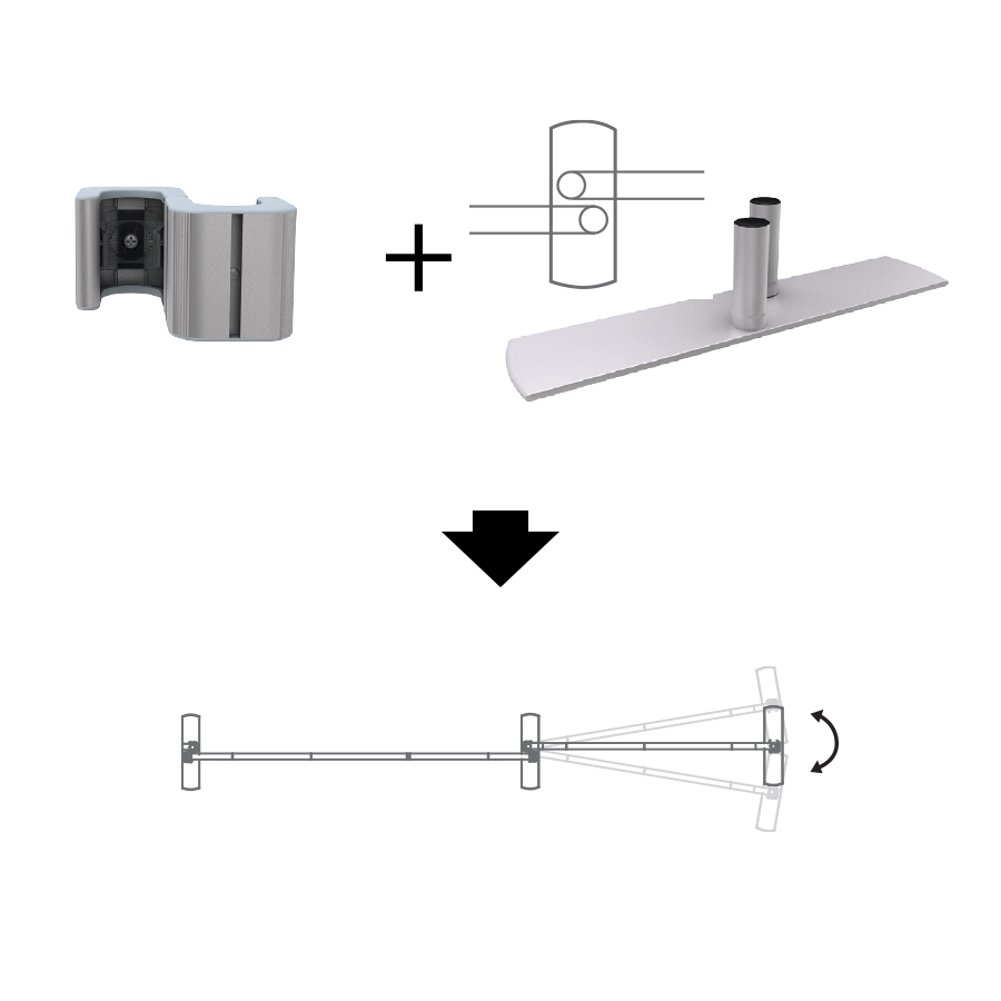 Attache pour relier deux panneaux d’Horizon Media qui se chevauchent. Doit être jumelé avec un pied double rectangulaire.