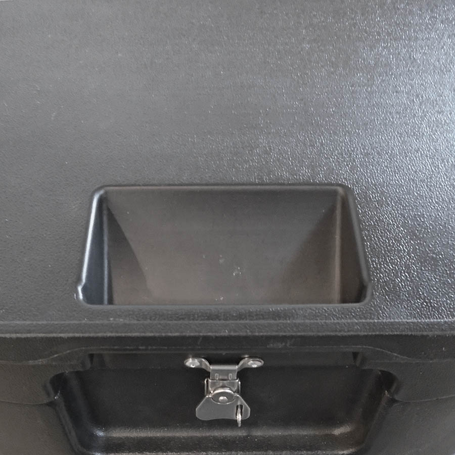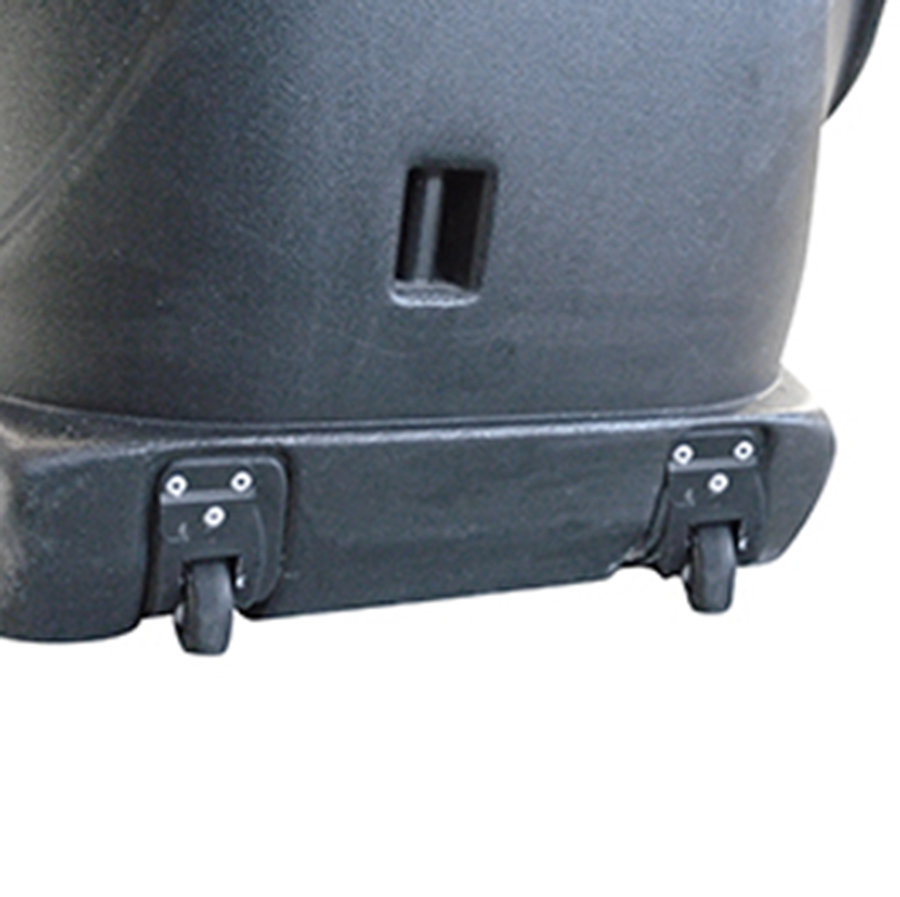 Caisse de transport muni de roulettes et de 2 poignées pratiques pour le transport et la manipulation.